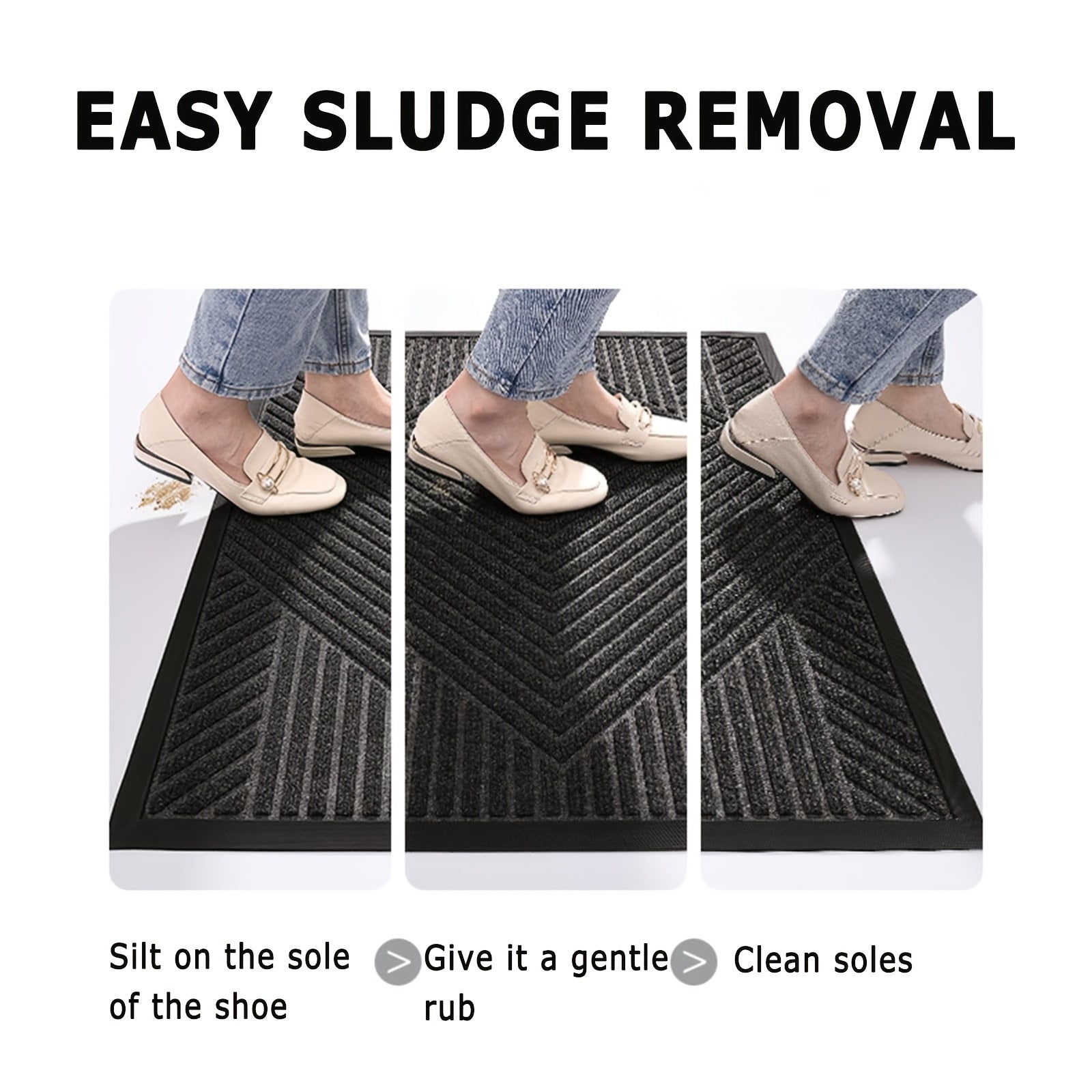 Heavy-Duty Anti-Slip Door Mat, Mud-Proof Washable Entrance Rug with Geometric Pattern, 24x36 Inch, Black Nylon Blend for Home and Balcony